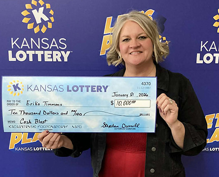 It was a crazy day at the office for Erika Timmons of Olathe. They were slammed all morning, so over her lunch break Timmons decided to grab a pair of $20 Cash Blast scratch tickets to play and unwind. There was no time to unwind, though, after Timmons revealed winning spot after winning spot for a $10,000 prize!